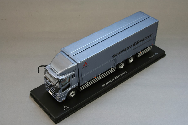 07年モデルのFU型スーパーグレート、ウイングボディー仕様です。大迫力のキャブデザインはこれまでのトラックの常識を覆した流麗な仕上がりに。高い整備性やミラーステーにいたるまでぬかりなく設計された、まさに「機能美」の鑑というべき車両を、細部にわたり再現した43分の1スケールモデルです。