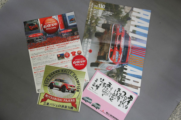 3枚目。当時高校生だったボクは、「ラリーアートジャーナル」をもらうためだけに、よく学校帰り学ランでディーラーに寄っていたのはいい思い出です。右下のピンク色の詩が書いてあるモノはマウスパッドです。