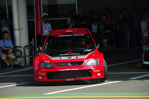一方、メガウェブの試乗コースである「ライドワン」では各種レーシングカーの実走パフォーマンスが行われました。そこで抽選でランサーWRC05とエボ10ゼロカーに同乗走行ができるチャンスがあるとのことで、さっそく申し込みを……。