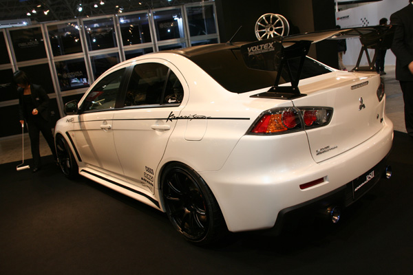 残念ながら、三菱自動車の出展は見送られましたが、ランエボの人気は依然健在で、今年も多くのチューニングランサーが展示されていました。順不同で紹介していきたいと思います。